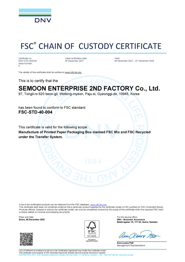 세문기업 FSC인증서